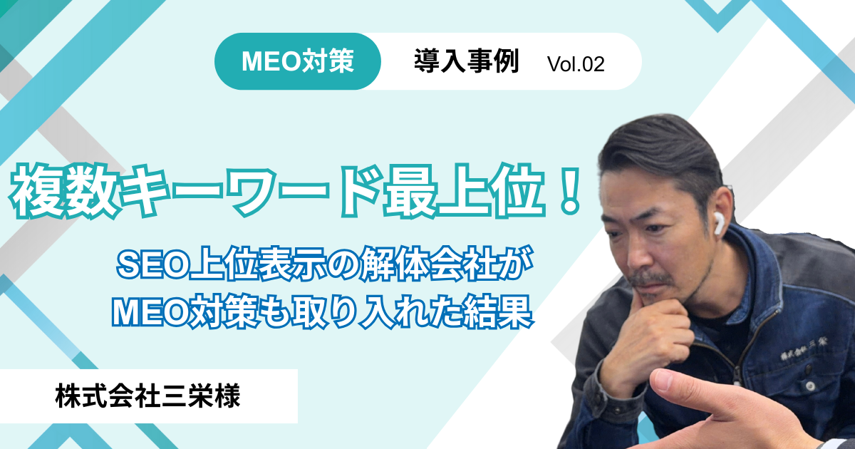 三栄様|MEO運用半年で複数キーワードで1位を獲得!お問い合わせが月5件以上に!