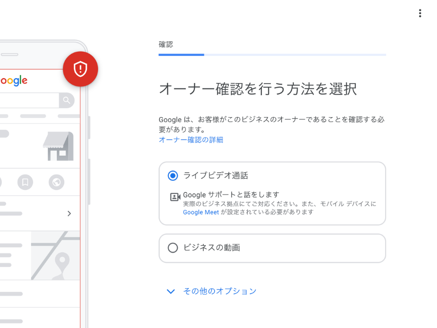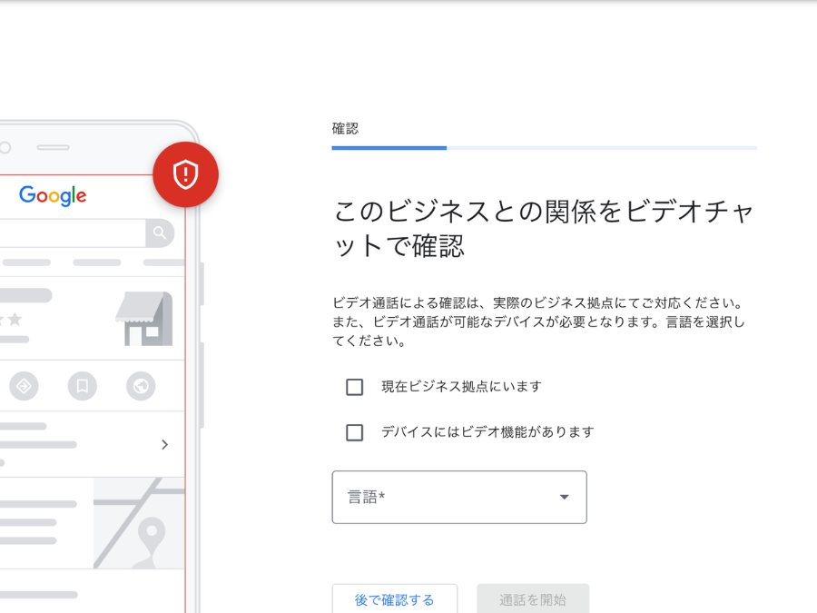 Google担当者と直接ビデオ通話を行い、店舗の実在を確認する認証方法です。