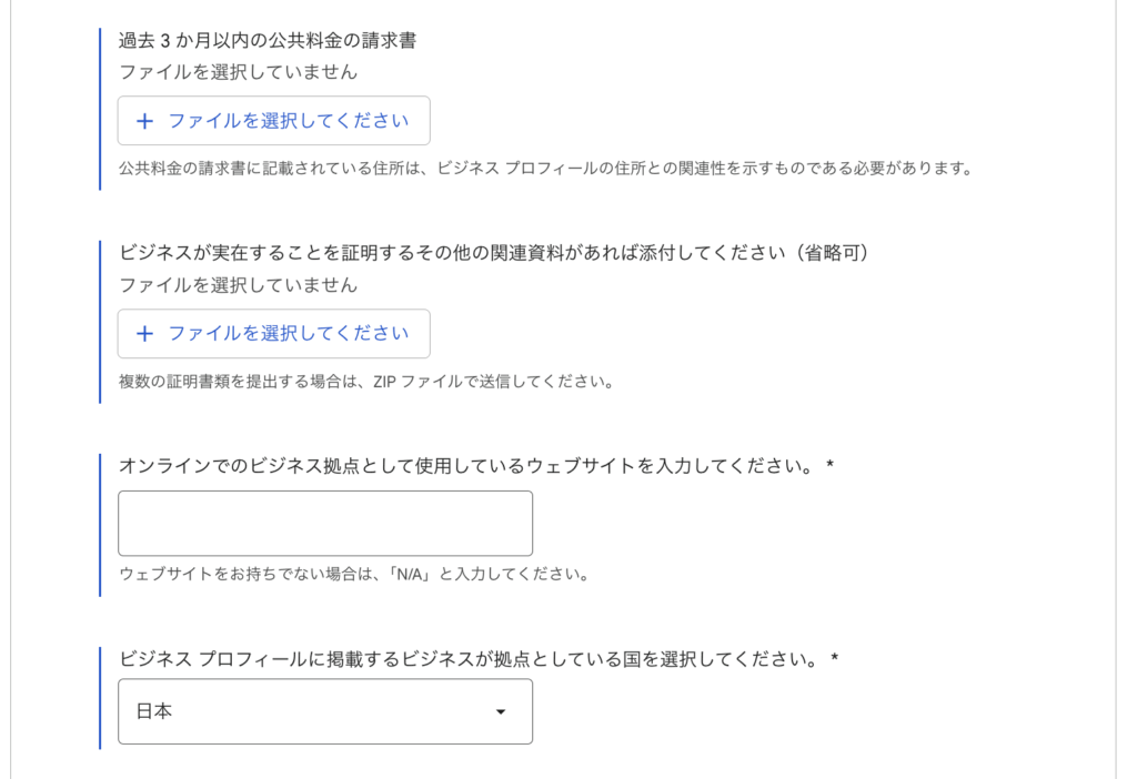 • 納税証明書や許認可証など公的書類でGoogleビジネスプロフィールと住所や名称が一致している必要があります。