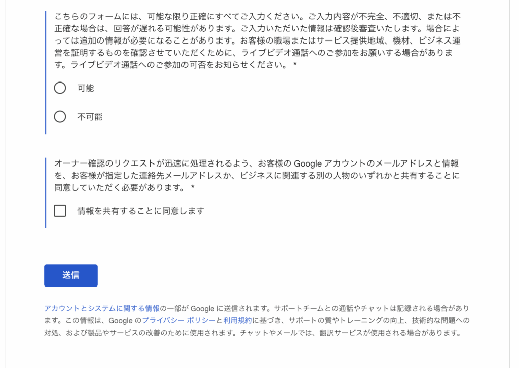 ▼サポートフォーム:https://support.google.com/business/gethelp?hl=jp