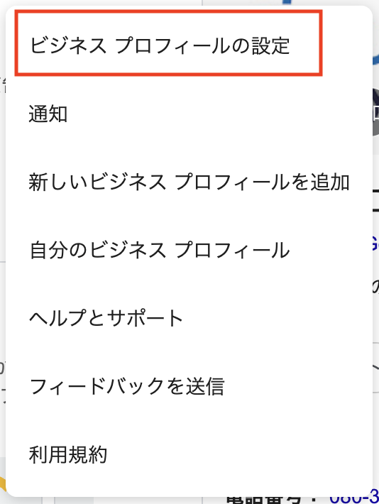 ビジネスプロフィールの設定をクリック