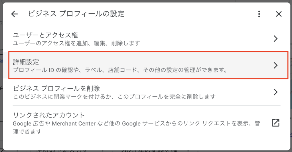 ビジネスプロフィールIDは下記から確認できます。