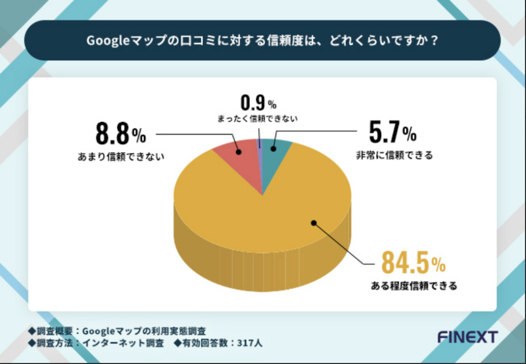 それでは、ユーザーは、実際にGoogleマップの口コミをどの程度信用しているのでしょうか?